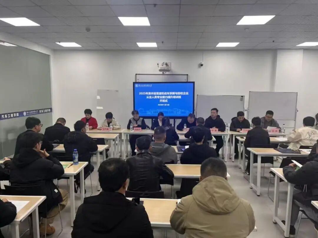 11月12日,贵州省再生资源行业协会2025年报废机动车拆解与回收企业从业人员专业技能提升培训班在贵州交通职业大学正式开班。省再生资源协会秘书长刘仁敏、中国物资再生协会原副会长高延莉,学校校企合作处处长王毅、汽车工程学院相关负责人,以及来自省内29名从业人员参加开班仪式。 刘仁敏在开班仪式上表示,此次培训契合循环经济发展需求,期待通过校企携手,助力从业人员提升规范拆解、环保处置等专业技能。王毅介绍了学校升格为职业本科院校后的发展成果,...
