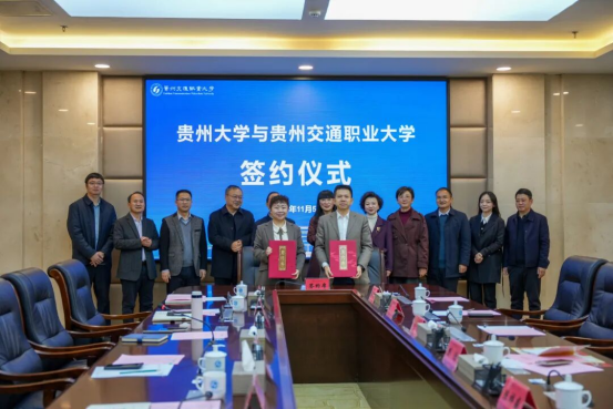 11月5日上午,我校与贵州大学举行合作签约仪式。贵州大学党委副书记彭洁,党委常委、副校长陈祥盛,我校党委副书记、校长刘雁出席,仪式由我校党委委员、副校长吴薇主持。 会上,彭洁指出,两校合作契合时代发展需求,符合教育协同发展理念,贵州大学将充分发挥综合性大学的学科与科研优势,与贵州交通职业大学的职业教育特色形成互补,共同为地方经济与社会发展培养高素质人才。 刘雁表示,我校高度重视与贵州大学的合作关系,期待以此次签约为新起点,...