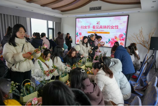活动内容丰富多彩,包括创意签到、场景游戏和插花艺术等环节。在“木头人”游戏中,参与者需在特定口令下保持不动,展现了敏捷与智慧。随后的套圈游戏让女职工们在轻松愉快的氛围中赢得了精美礼品。插花活动中,专业花艺师的指导让大家亲手创作了美丽的插花作品,展现了女性的巧思与创造力。