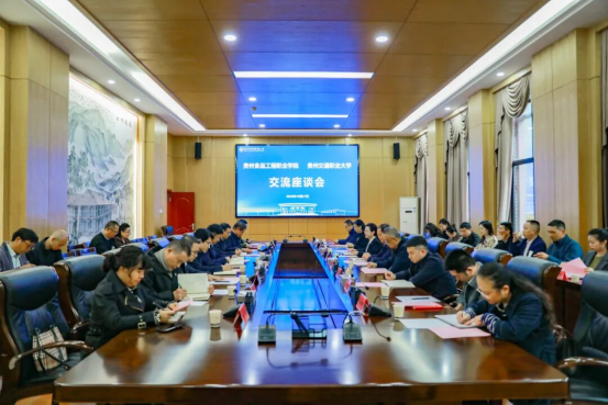 彭光明向贵州交通职业大学长期以来对贵州食品工程职业学院的关心支持表示诚挚感谢,并简要介绍了学院办学基本情况。他表示,贵州交通职业大学作为贵州职业教育的标杆,在职业教育领域的创新实践和扎实成效有目共睹,希望以此次调研为契机,在办学理念、专业建设、人才培养、办学能力等方面进一步加强两校沟通交流,在互学互鉴中构建可持续的合作关系,共同书写职业教育高质量发展新篇章。