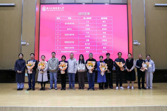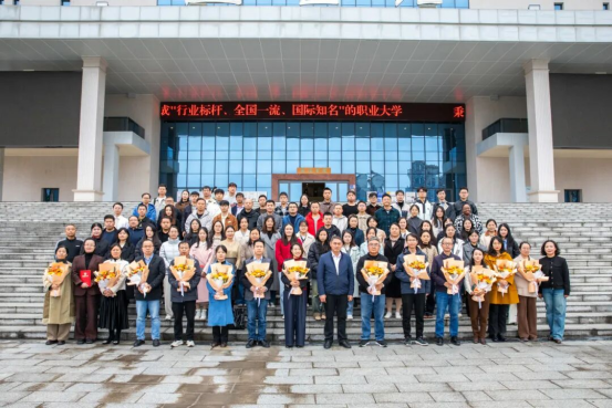 现场,44名2025年新入职教师与39名导师完成结对并献花致敬。“教学新秀”教师代表、通识教育学院何懿老师分享成长感悟,感谢导师在教学与赛事中的悉心指导,表态将深耕教学、尽快成长为骨干力量。新入职教师代表、艺术与旅游学院李璇老师表示,将紧跟导师步伐,潜心钻研教学艺术,探索职教特色教学模式,兼顾教学本领与育人初心。