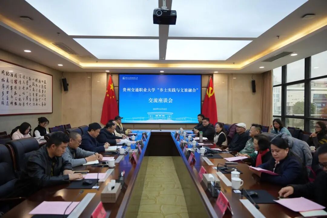 12月22日,贵州省教育厅关工委主任赵廷昌、副主任胡晓,贵州省教育厅原派驻洪江村第一书记马丽华,国家一级美术师李向明等专家学者到访我校,围绕“乡土实践与文旅融合”主题展开座谈交流。校党委书记何兴发、党委副书记王昌林出席座谈会。