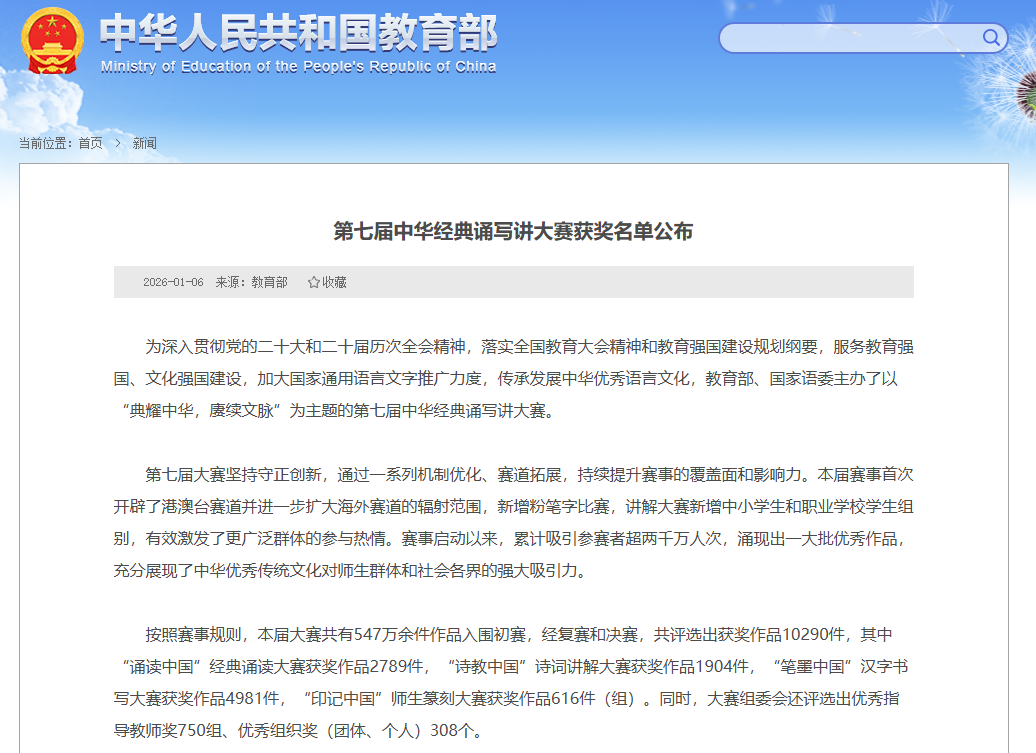 此次获奖,不仅是沈松钦老师个人专业能力的体现,也是我校长期以来高度重视中华优秀传统文化教育、注重教师教学能力培养的成果缩影。未来,学校将继续鼓励和支持广大教师深耕教学、传承经典,努力提升学生语言文化素养和综合素质水平,为培养担当民族复兴大任的时代新人贡献力量。