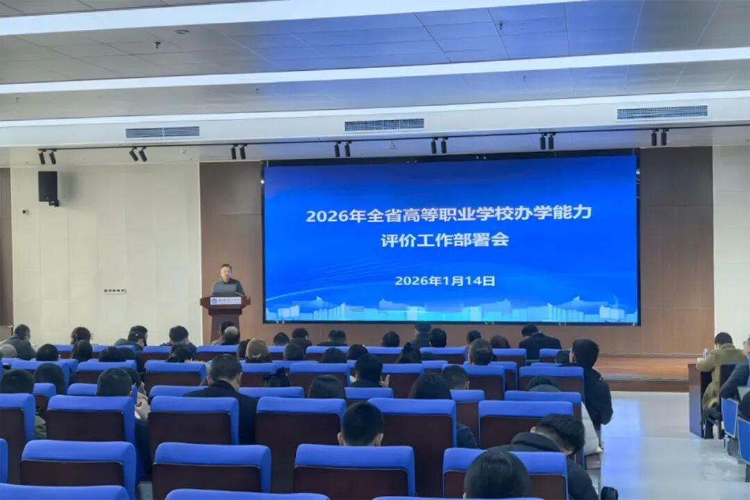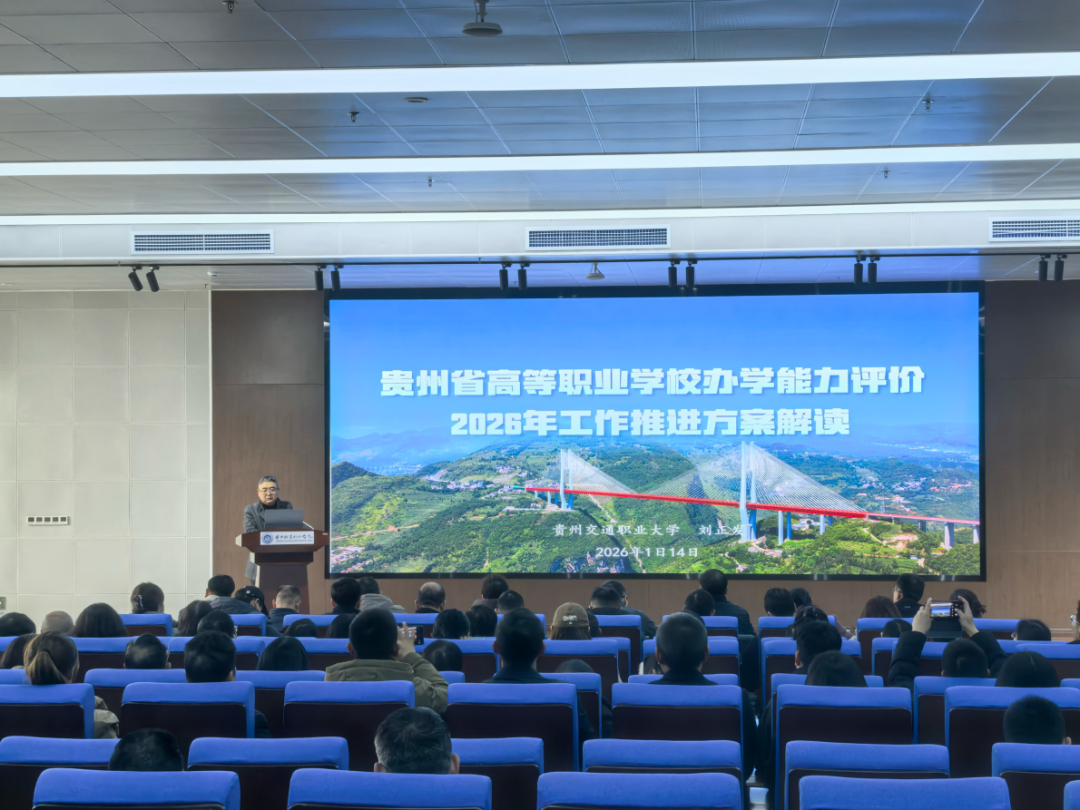 1月14日,由贵州省教育厅指导、贵州交通职业大学职业教育发展研究中心承办的2026年全省高等职业学校办学能力评价工作部署会在贵阳职业技术学院举行。贵州省教育厅职业教育与成人教育处处长付颖纯出席,全省参评的15所高等职业学校参加。会议由学校党委常委、副校长吴薇主持。