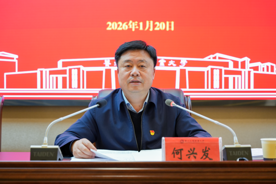 1月20日,学校召开2025年度基层党组织书记抓党建工作述职评议考核会。省委组织部组织四处副处长李硕、省委组织部组织四处干部王滢涓、省委教育工委组织部干部谢光林到会指导。校党委书记何兴发主持会议并讲话。全体在家校领导,各学院党委书记、主持工作的副书记,各基层党支部书记,党外代表人士参加会议。