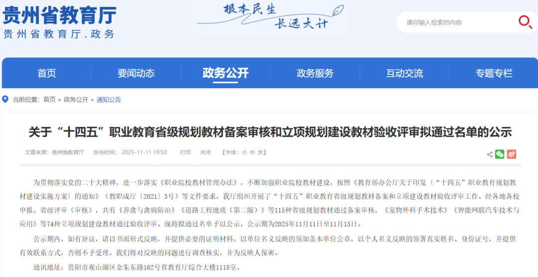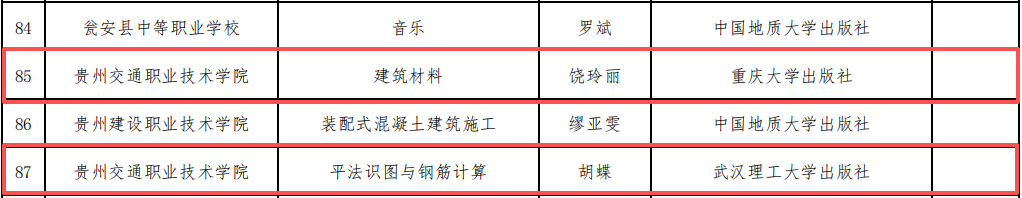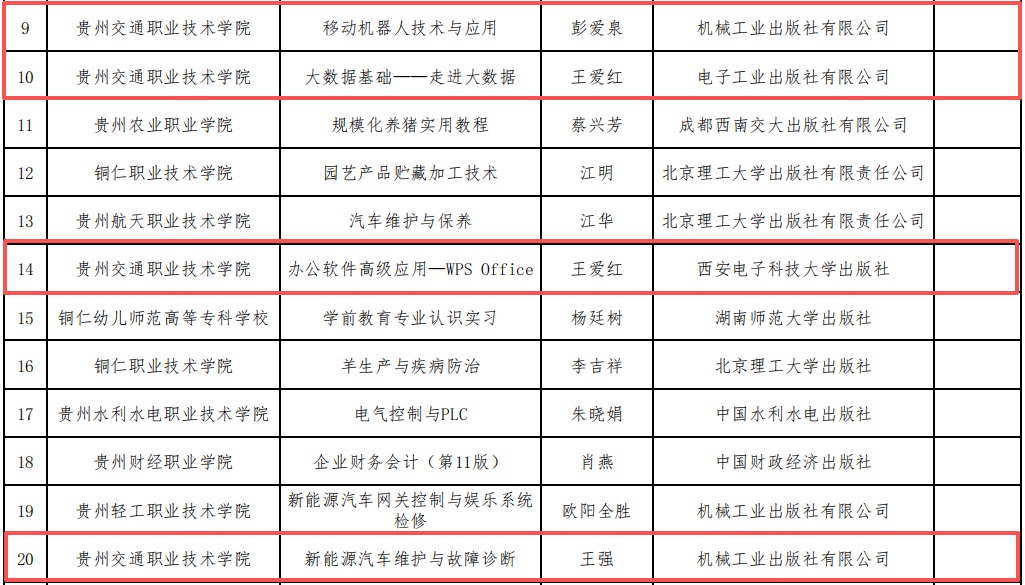近日,教育部与贵州省教育厅相继公布“十四五”职业教育国家及省级规划教材遴选结果,我校教材建设工作取得重要进展,共4部教材入选“十四五”职业教育国家规划教材,11部教材拟通过省级验收。