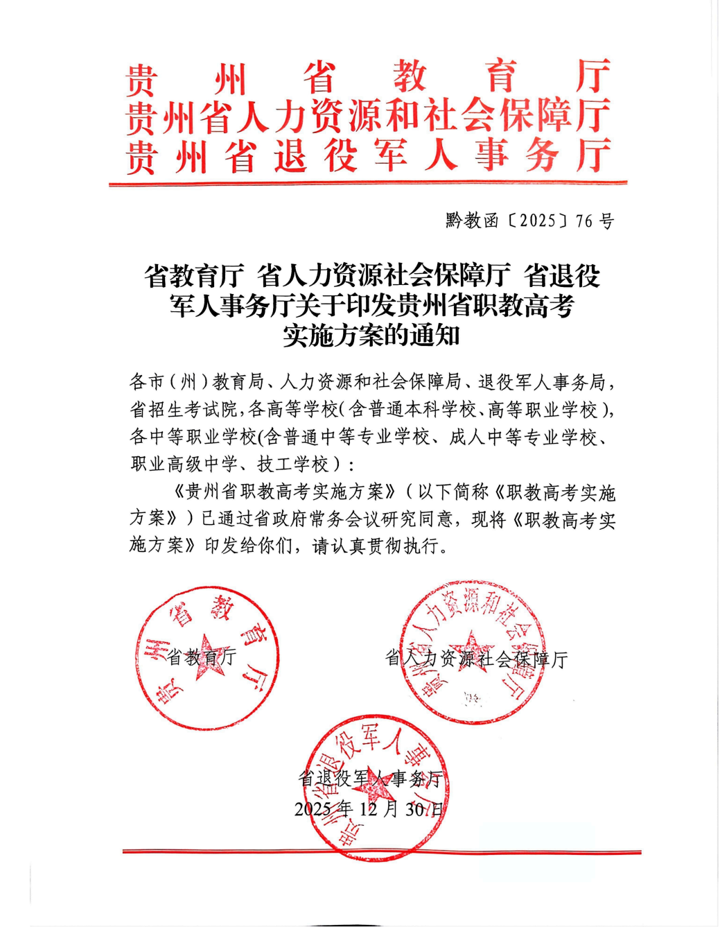 以下为《贵州省职教高考实施方案》全文:
