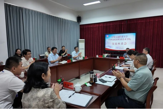 10月10日上午,学校党委书记何兴发,党委副书记王昌林、杨再豪率队赴黔西南民族职业技术学院调研交流。黔西南民族职业技术学院党委书记于立群,院长李光武,党委副书记张丙乾,副院长王媛荭、汪荣、张鲁涛及相关部门负责人出席交流座谈会。