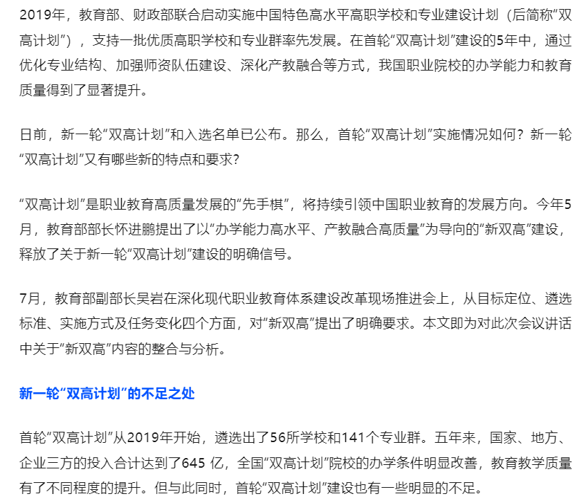 职教观察丨从“双高”到“新双高”,探索职教改革新走向