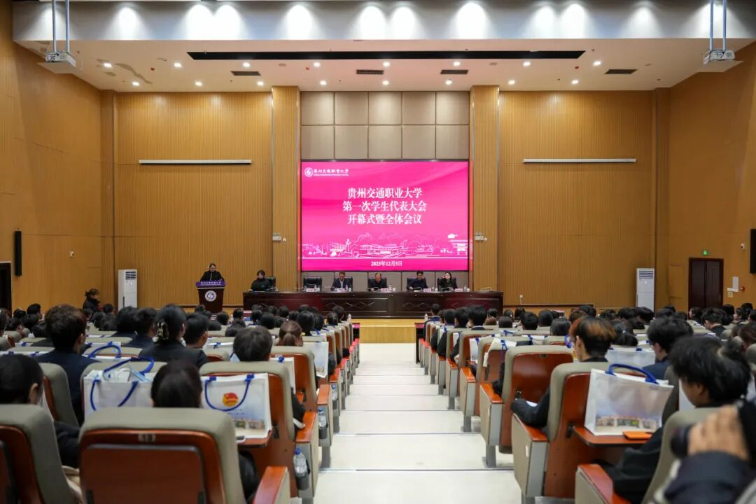 12月5日,贵州交通职业大学第一次学生代表大会在图书馆A区报告厅举行。学校党委副书记、校长刘雁,党委副书记杨再豪,党委常委、副校长田兴强出席会议。贵州省学生联合会代表杨艺敏以及来自各兄弟高校的学生会组织代表应邀到会。开幕式由校团委综合科负责人肖梅主持。奏唱中华人民共和国国歌大会在庄严的国歌声中开幕。贵州交通职业大学党委副书记、校长刘雁致开幕词刘雁在致辞中指出,本次大会是我校青年学生政治生活中的一件大事,...