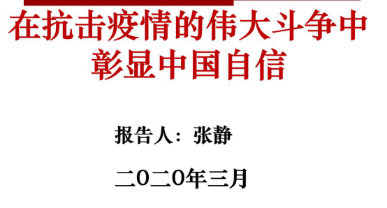 【交院要闻】书记院长思政课,张静讲述在抗击疫情伟大斗争中的中国自信3月9日,云端开学第二周,书记院长思政课如约而至。学院党委书记张静在云端为全体师生讲述抗疫斗争中的中国自信。张静从道路、制度、理论、文化等四个方面解析了在这场疫情防控的人民战争、总体战、阻击战中,我们始终把人民群众的生命安全和身体健康放在第一位,医护人员千里驰援、人民军队迅速集结、全国各地联合防疫、火神山、雷神山医院十天建成、救援...