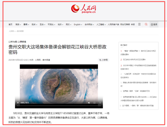 接下来,贵州交通职业大学马克思主义学院将以花江峡谷大桥建成通车为契机,开展好“工程载道·桥见精神”高桥思政课实践教学活动,引导学生在“桥见中国”的学习中,读懂“大国工程”背后的“中国精神”,成长为“既懂桥梁力学,更懂家国情怀”的时代新人。