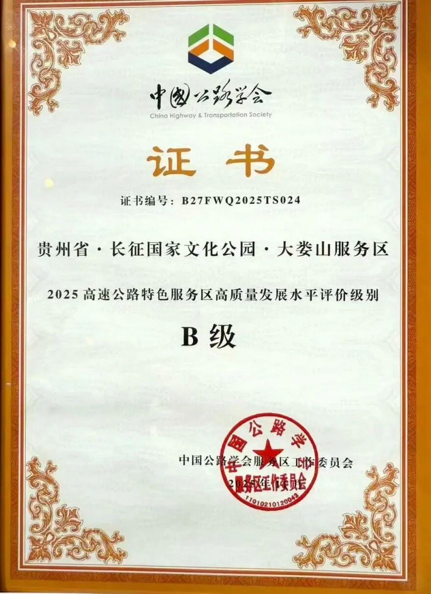 近日,在中国公路学会组织的“2025年高速公路特色服务区高质量发展水平评价”中,长征国家文化公园·大娄山服务区成功获评全国B级特色服务区,成为贵州省首个获此级别认定的高速公路服务区。作为贵州高速集团的战略合作单位,我校在服务区规划建设与运营过程中充分发挥高校智力与人才优势,展现了学校产教融合模式在服务交旅融合实践中的积极成效。