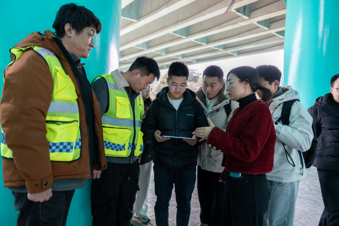 本次现场调试工作的重点主要是依据大桥实际运行数据与前期巡检反馈,对系统进行全方位调优。在软件层面,团队核心成员、智能道桥隧检测与运维方向负责人应江虹副教授表示,团队正利用现场采集的新数据,持续训练与优化AI病害识别模型,旨在进一步提升对裂缝、锈蚀等细微病害的识别准确率与预警时效性。在硬件层面,团队研发技术骨干重点检查了机器人的行走机构、充电系统及环境适应性,确保其在峡谷强风、高湿等恶劣条件下的长期可靠运行。