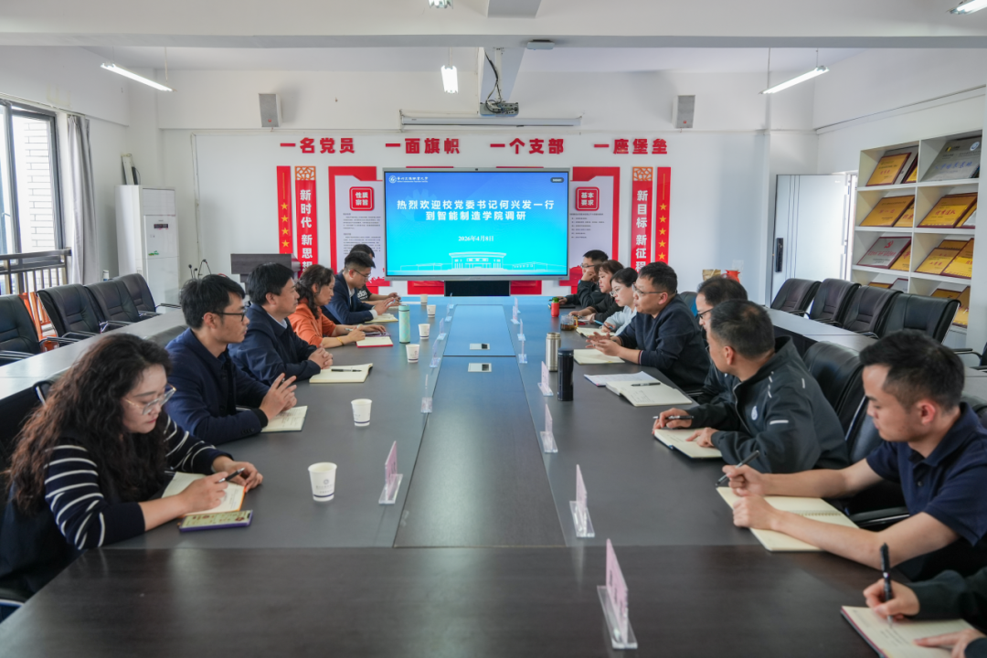 何兴发认真听取汇报,对智能制造学院在办学积累、专业建设、人才培养、产教协同等方面取得的成效给予充分肯定。他指出,智能制造学院作为学校前瞻布局智能制造、新能源等新兴产业的核心阵地,是推动学校职业本科转型、服务区域产业高质量发展的重要引擎,办学基础扎实、专业特色突出,要在巩固现有优势的基础上,进一步强化智能制造专业特色,补齐发展短板、强化发展动能,持续推进转型升级,充分发挥示范引领作用。