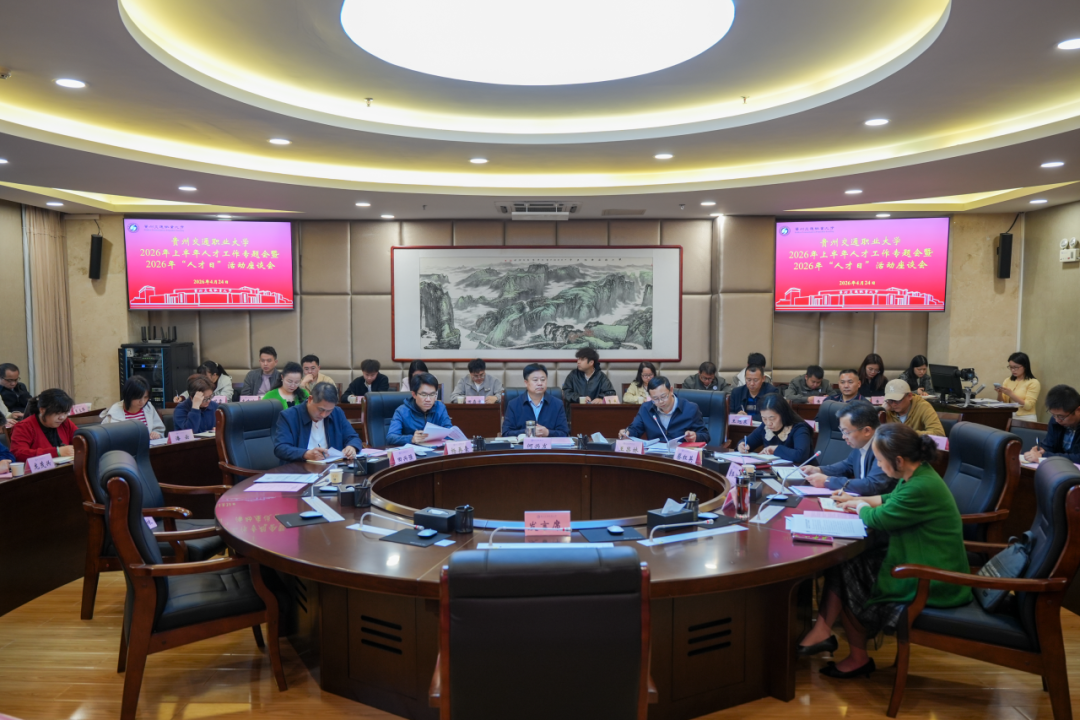 会议传达学习了习近平总书记关于人才工作的重要论述和省委《关于打通高校、科研院所和企业人才交流通道的实施意见》《关于优化贵州省党委联系服务专家机制的实施意见(试行)》,研究了《中共贵州交通职业大学委员会领导班子联系服务高层次人才工作实施办法》,对学校2026年人才工作作安排部署,并为我校获评2021—2025年度全省交通运输行业先进个人、先进集体的教师代表,和荣获贵州省第二届职业技能大赛“贵州省技术能手”的教师颁奖。