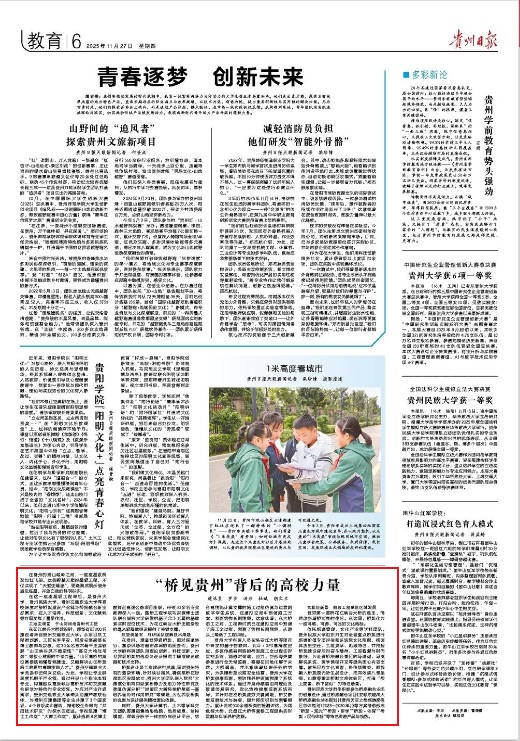 在这一宏伟进程中,贵州大学、贵州民族大学、贵州交通职业大学等高校深度对接桥梁建设产业链与桥旅融合新业态需求,在人才培养、科技创新、文化赋能等方面发挥了不可替代的作用,为“桥见贵州”品牌注入坚实内涵,是教育赋能实体经济、服务区域高质量发展的生动实践。