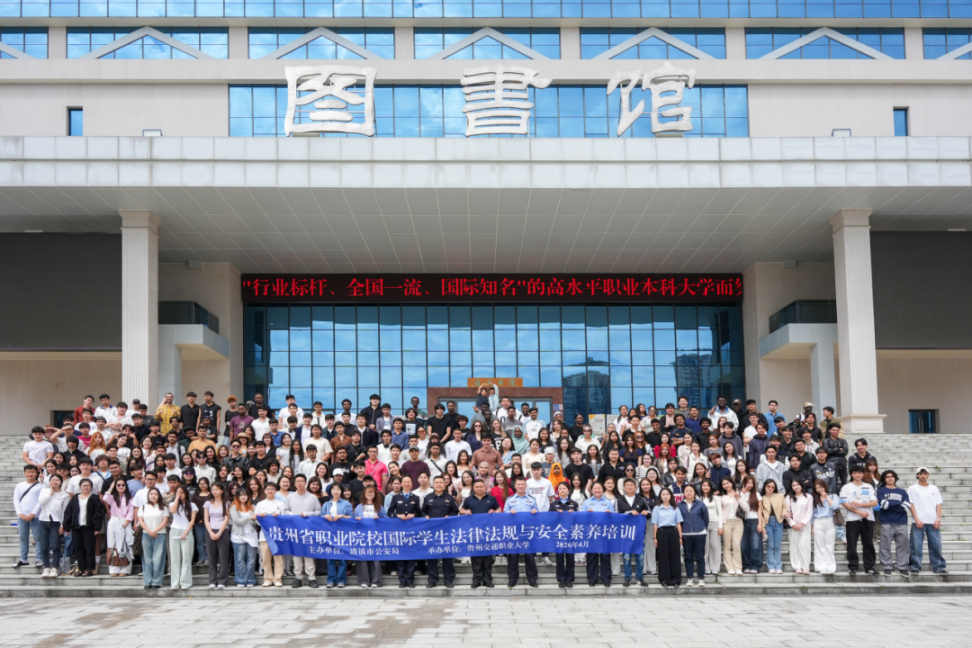 为进一步强化清镇职教城国际学生安全管理工作,切实筑牢校园安全防线,保障国际学生在华学习生活的安全与便利,4月10日,清镇职教城国际学生安全专题座谈会在贵州交通职业大学圆满举办。本次座谈会由清镇市公安局主办,贵州交通职业大学协办,覆盖清镇职教城6所院校的229名国际学生,为在黔国际学生送上了一堂实用、全面的安全“必修课”。