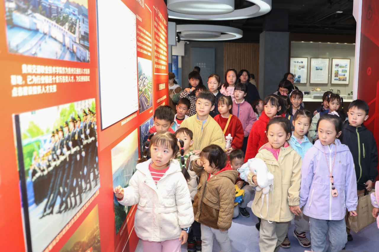 依托“马院+书院”协同育人暨大中小学思政课一体化建设实践课堂,学校组织教职工子女走进“大思政”实践教学基地,在交通红色场馆讲解、民族文化体验、模拟法庭、红色游戏等特色课程中,让小朋友们在“行走的思政课”与“场馆思政课”里,赓续中华文脉,传承红色基因。