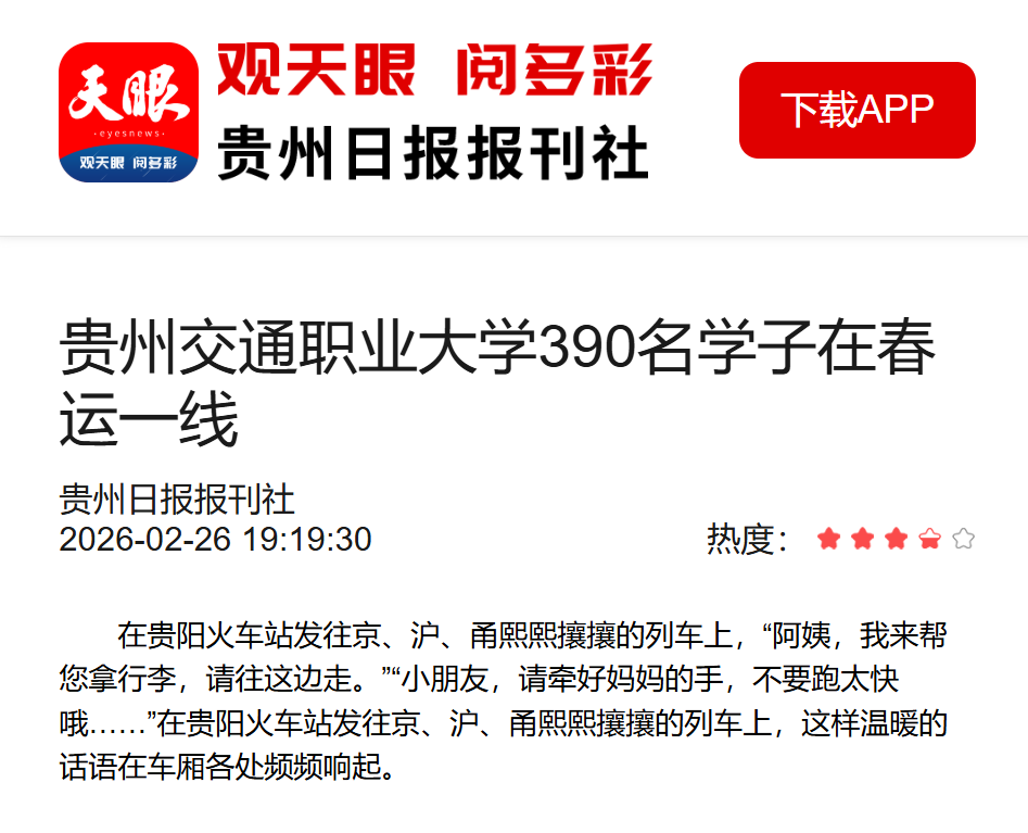 自春运启动以来,贵州交通职业大学390名学生志愿者分布在列车各个岗位,为旅客提供贴心乘务服务,用青春之力温暖旅客每一段旅程。