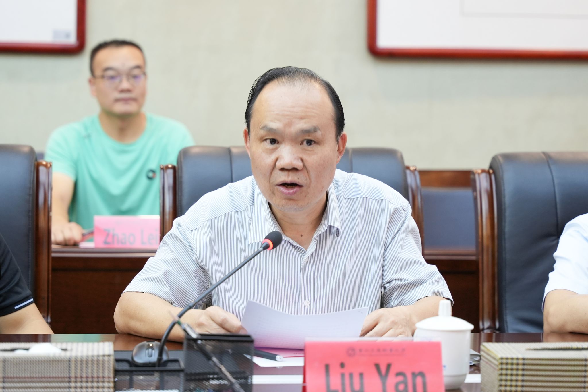 座谈伊始,刘雁致欢迎辞,首先欢迎远道而来的嘉宾,同时介绍贵州交通职业大学作为一所以交通为特色的公办本科层次理工类职业院校,六十余年来在“国家示范校”“国家优质校”和国家“双高校”的建设中不断成长,正加快建成“西部领先、行业标杆、全国一流、国际知名”的高水平职业大学。刘雁表示此次与吉隆坡科技大学、安徽绿海商务职业学院的交流,正是校际合作优势互补、经验互鉴的重要契机,三校将在师生互访、课程共建、人才培养等方面开展国际交流合作,持续推动三校合作走深走实。