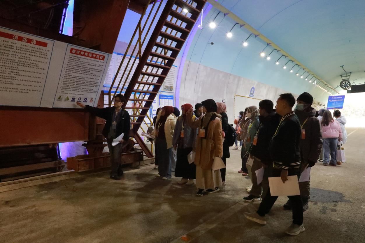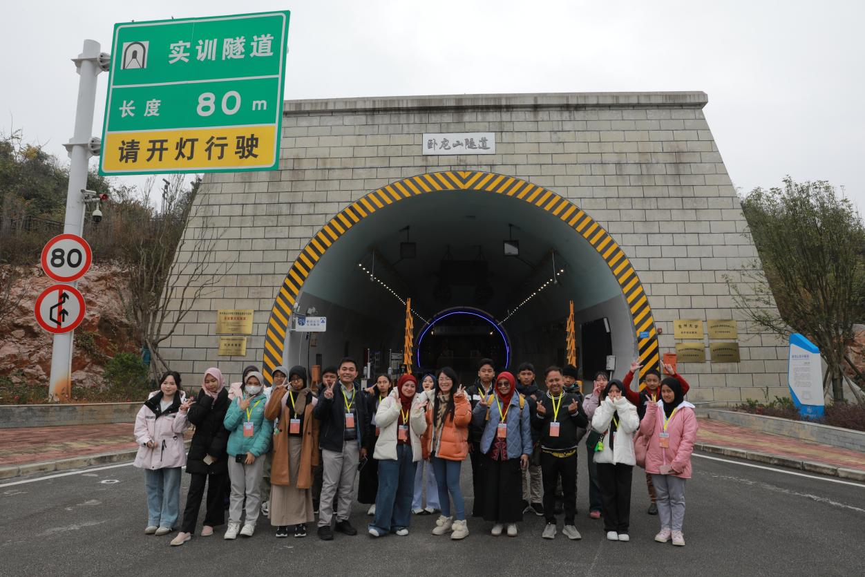 在我校路桥专业群实训基地卧龙山隧道,代表团围绕隧道结构、工程检测、交通土建等主题开展探究式研学,沉浸式体验我校依托真实工程情境构建的实践教学体系。印尼师生对我校“以项目促学习、以实践带研学”的教学模式给予高度评价。