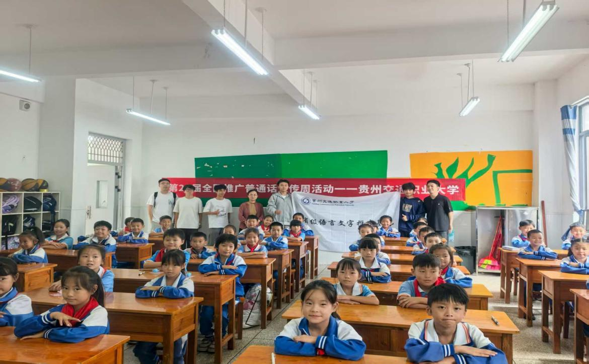 9月15日,贵州省语言文字推广基地(贵州交通职业大学)组织师生走进清镇市新店小学与新店中学,为两校学子带来了一次别开生面的国家通用语言文字推广活动,拉开了我校第28届全国推广普通话宣传周活动的序幕。