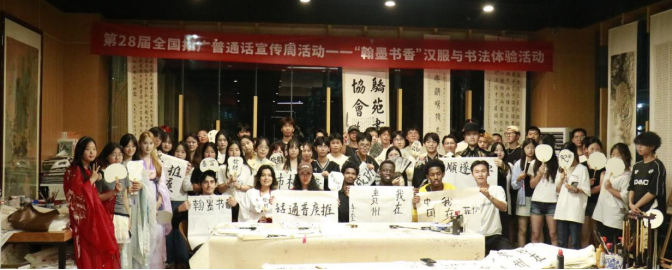 在学生素质发展中心举办的“翰墨书香”汉服与书法体验活动,设置汉服文化体验与规范汉字书写两大区域。师生们通过试穿汉服,领略中国传统服饰之美。提笔书写,感受汉字的魅力与乐趣,并不断强化“写规范字”的意识。众多国际学生积极参与,在沉浸式体验中增进了对中华优秀传统文化的理解与喜爱。