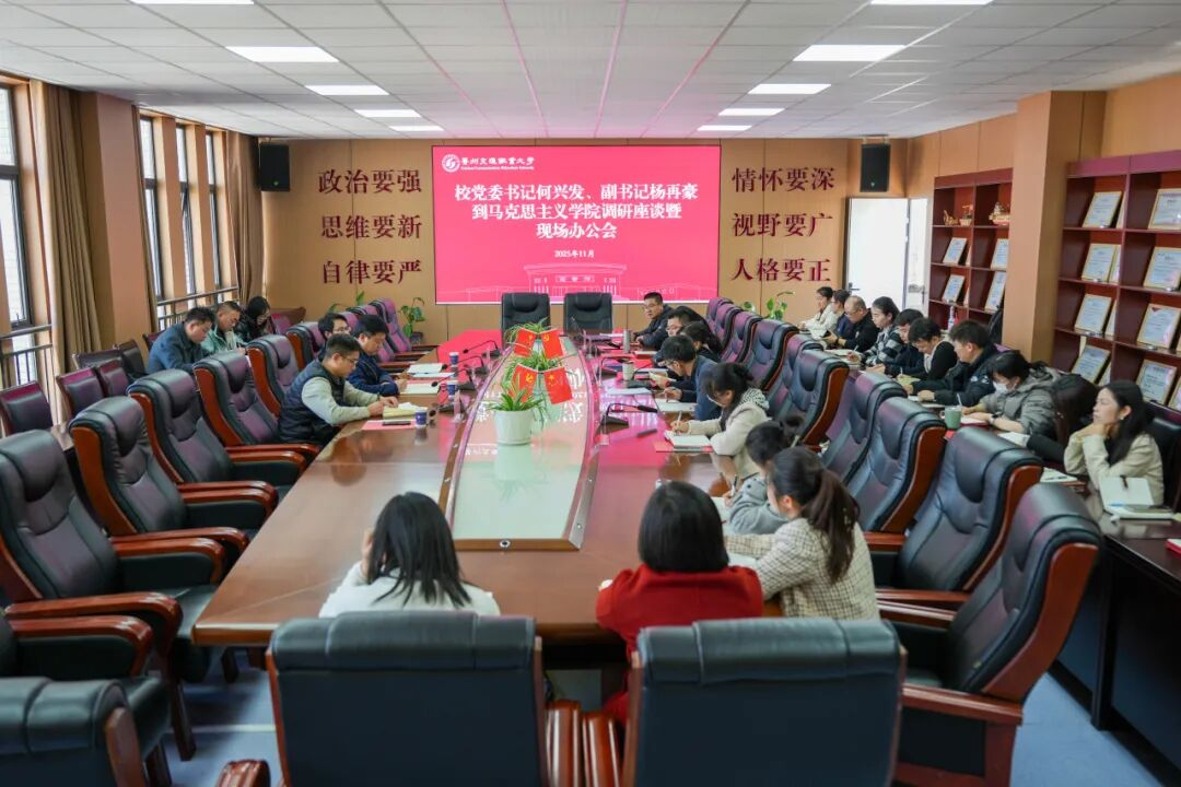11月21日下午,学校党委书记何兴发、党委副书记杨再豪赴马克思主义学院调研,与思政课教师围绕思政课教学改革创新、马克思主义学院“十五五”发展规划、教师队伍建设及高层次人才作用发挥等内容进行了深入交流。