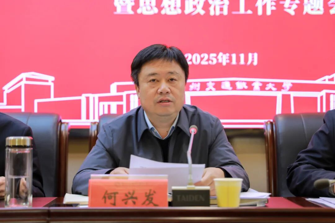 何兴发就进一步加强和改进学校思想政治工作提出三点意见:一要提高政治站位,深刻认识思想政治工作的极端重要性。要坚持用党的创新理论武装头脑,把学习贯彻习近平新时代中国特色社会主义思想作为首要政治任务,持续深化对《习近平谈治国理政》第五卷、党的二十届四中全会精神、习近平总书记在贵州考察时的重要讲话精神等内容的学习,引导广大师生深刻领悟“两个确立”的决定性意义,增强“四个意识”、坚定“四个自信”、做到“两个维护”。要牢牢把握思想政治工作的正确方向,紧紧围绕“为党育人、为国育才”的初心使命,守好意识形态主阵地,确保校园和谐稳定。二要聚焦重点任务,推动思想政治工作体系落地见效。要建强“马院+书院”双翼驱动机制,深化“三全育人”综合改革,落实“七进三联”工作要求。围绕“人工智能+思政教育”重点推进未来教育学院、未来技术研究院和未来产业学院建设,推动育人工作数字化、智能化。打造“通途”文化育人品牌,加强“第一议题、第一学院、第一课程”建设,在全校形成人人关心、人人支持、人人参与思政课建设的良好氛围。三要压实工作责任,确保思想政治工作取得实效。要强化组织领导,各级党组织要切实履行主体责任,党组织书记要扛起第一责任人职责。要健全考核机制,将思想政治工作纳入党建考核、干部年度考核和部门绩效评价。要注重队伍建设,配齐建强思政工作队伍,实施思政队伍青蓝工程,提升队伍专业素养和育人能力。