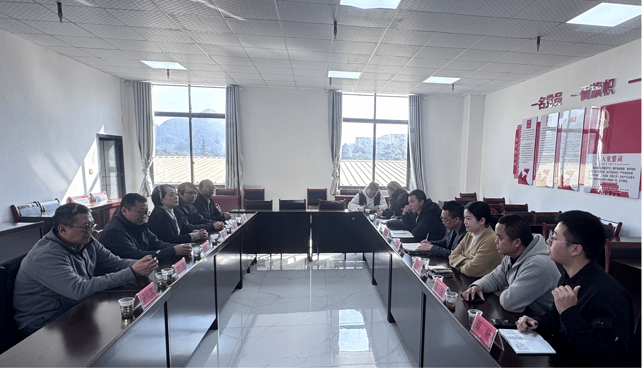 木陇街道办人大工委主任王国波热情接待了詹黔江副校长一行,同源社区“两委”及驻村工作队成员参与座谈交流。会上,王国波主任首先对詹黔江副校长一行的到来表示热烈欢迎和诚挚感谢,并详细介绍了木陇街道的基本情况。随后,贵州交通职业大学艺术与旅游学院驻村队员姬杨,就驻村工作开展情况及下一步计划进行了详细汇报。