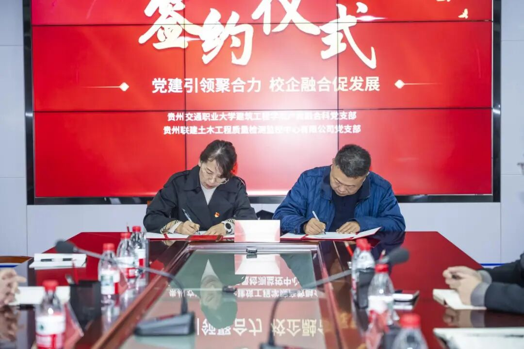 为深入贯彻落实新时代党的建设总要求,以党建领航深化道路与桥梁工程专业群建设,构筑“红色高桥”党建品牌新范式,12月11日,我校建筑工程学院产教融合科党支部与贵州联建土木工程质量检测监控中心有限公司党支部联合开展“党建引领聚合力,校企融合促新篇”联建共建活动。