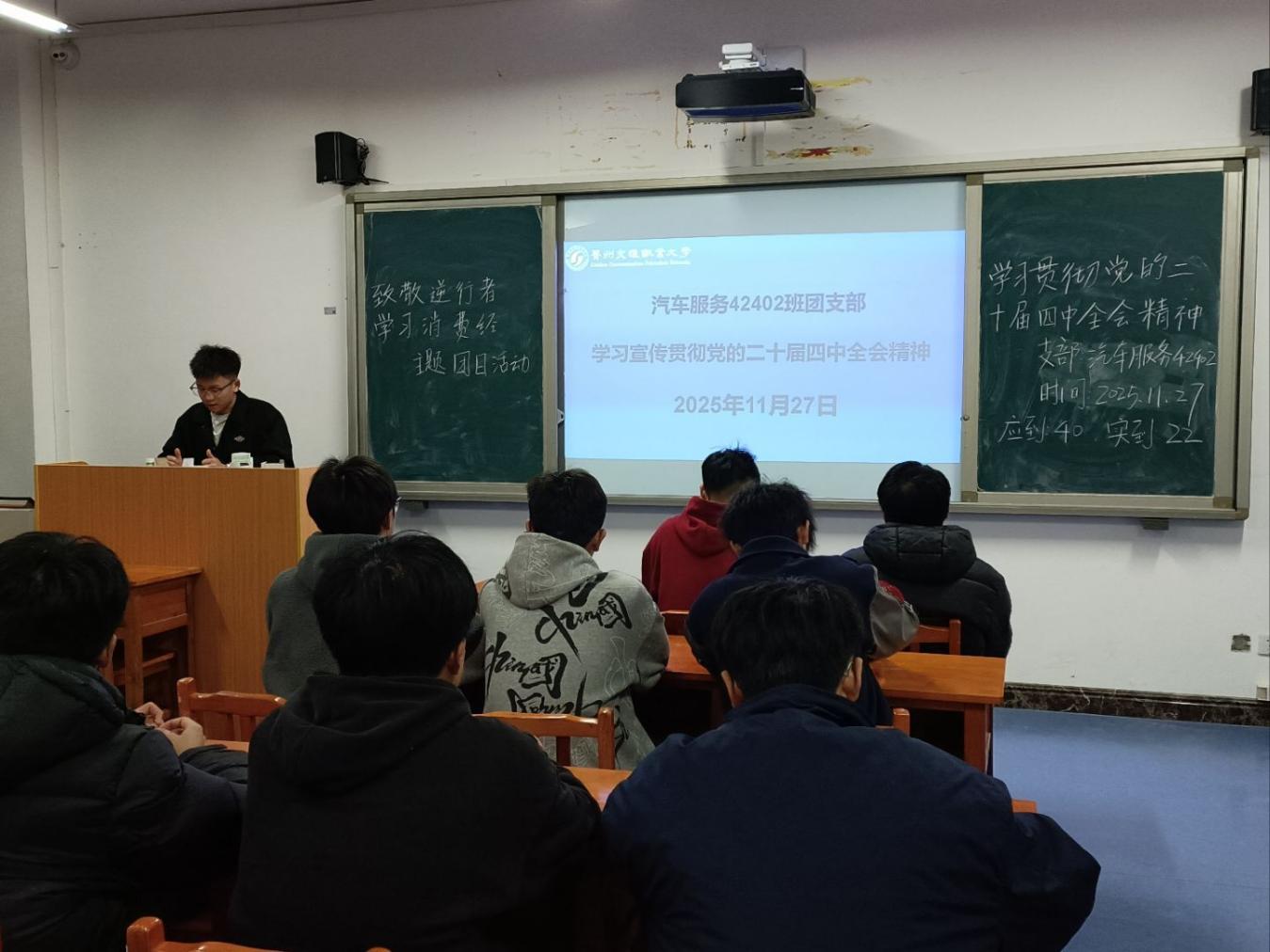 各团支部积极响应,分别以PPT讲解、原文领学、交流研讨等形式开展了“学习党的二十届四中全会精神”主题团日活动。通过团支部书记带头领学、团员交流研讨等方式,使学习更具针对性和实效性。通过系统学习,全院团员青年进一步明确了自身责任,大家认识到,践行全会精神要从身边做起,积极参与班团建设、志愿服务和社会实践,在服务与实干中锻炼能力。汽车工程学院团委将继续引领全院青年学子凝聚思想共识、勇担时代使命,将个人奋斗融入强国建设大局,为实现“十五五”宏伟蓝图贡献青春力量。