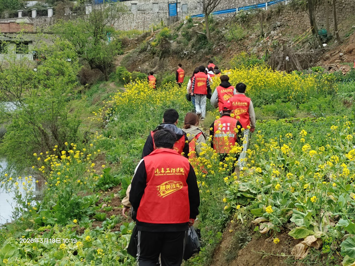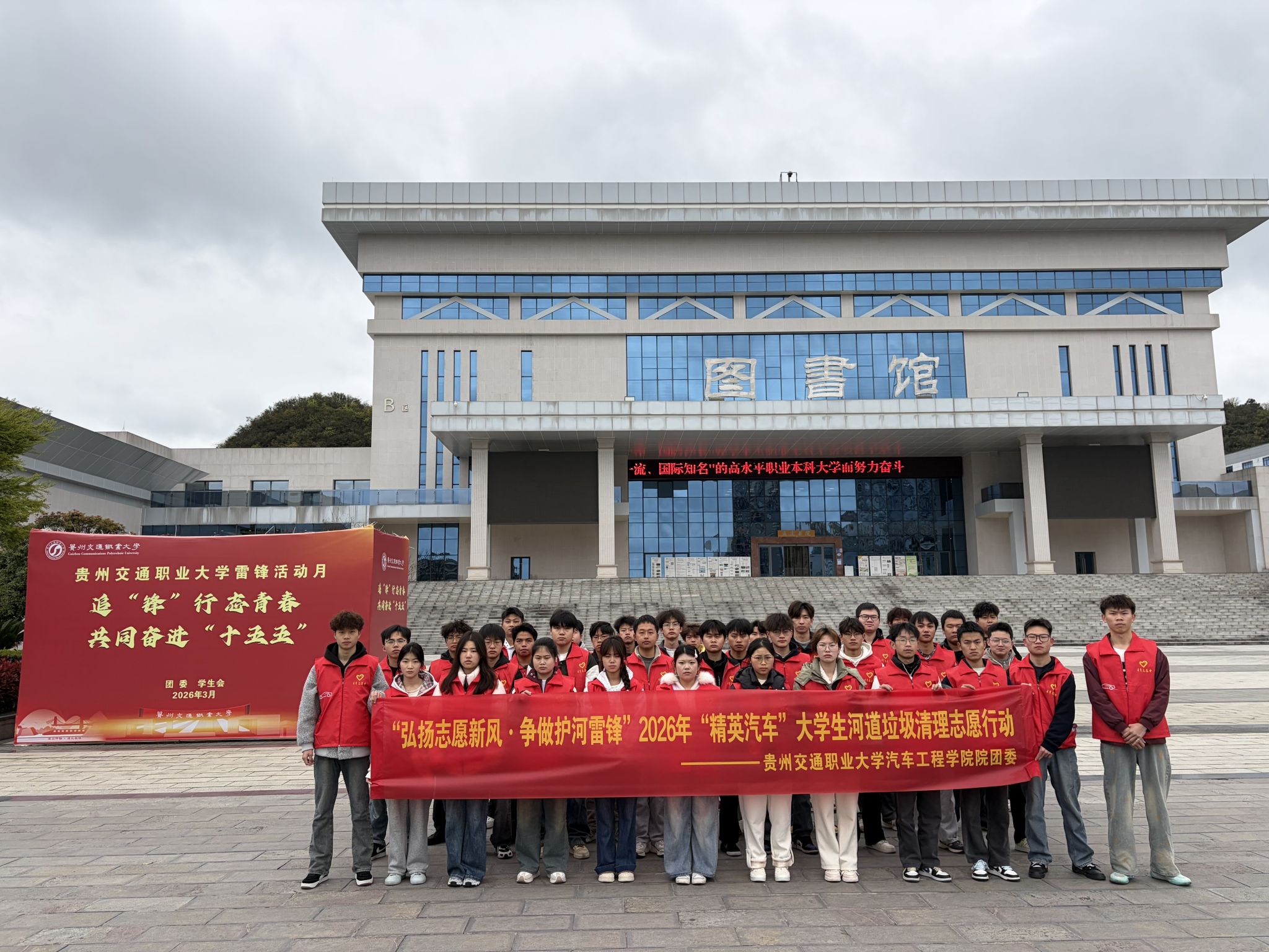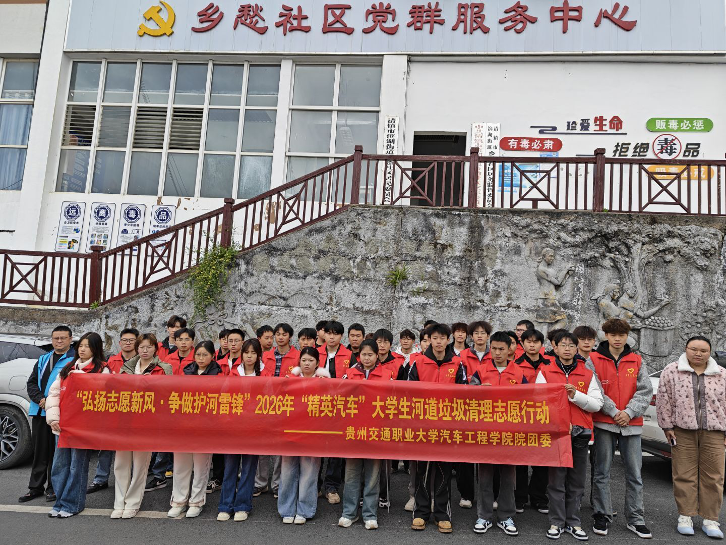 三月春风暖,志愿正当时。为深入弘扬雷锋精神,践行“绿水青山就是金山银山”生态理念,传承“奉献、友爱、互助、进步”的志愿精神,贵州交通职业大学汽车工程学院紧扣团中央“百万大学生进社区”工作要求,扎实开展学雷锋志愿服务实践活动。2026年3月18日上午,学院青年志愿服务队30余名志愿者化身“河小青”,走进滨湖街道社区辖区河段,开展“弘扬志愿新风·争做护河雷锋”河道治理与生态环境保护志愿服务,以青春行动守护母亲河碧水清波。