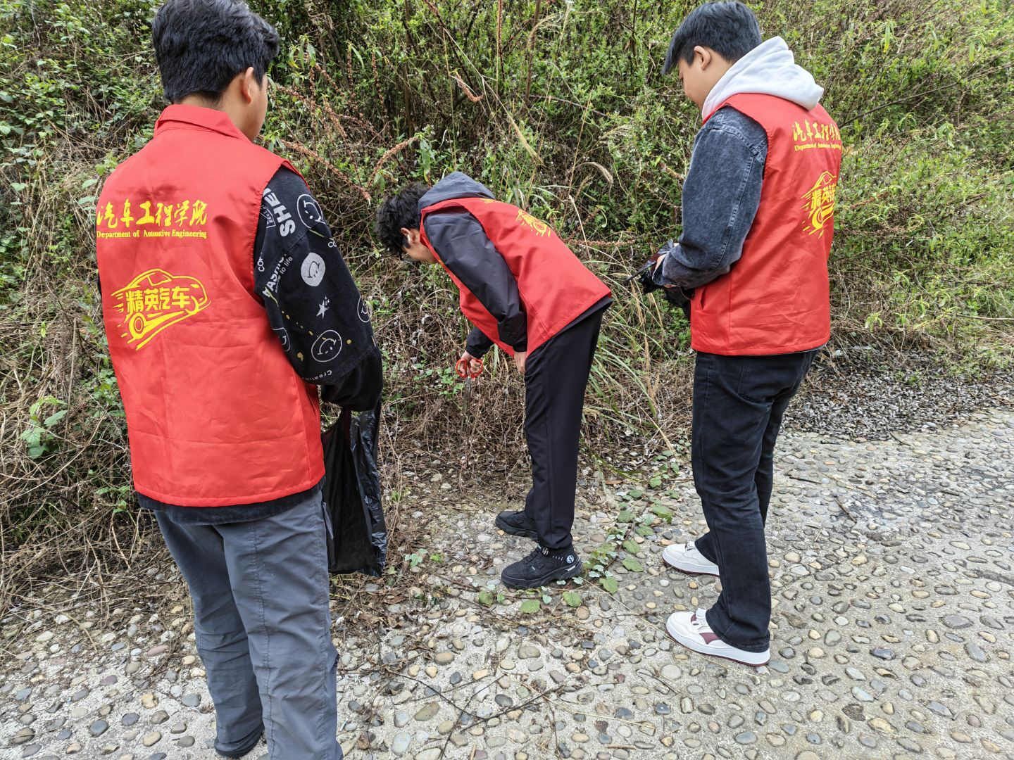 活动前期,学院志愿者与滨湖街道乡愁社区工作人员高效对接,紧扣“学雷锋·文明实践我行动”主题,推动志愿服务与生态保护深度融合。志愿者们身着统一红色志愿马甲,携带垃圾钳、垃圾袋、防护手套等工具,在河段沿岸整齐集结。简短的动员部署后,志愿者们迅速分组编队,沿河岸线开展“地毯式”环境清理,以饱满状态投入护河行动。
