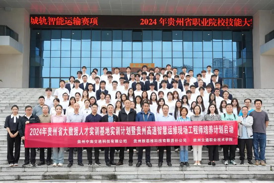 5月28日,2024年贵州省大数据人才实训基地实训计划暨贵州高速智慧运维现场工程师培养计划在我院启动,学院副院长田兴强,贵州中南交通科技有限公司党委副书记、工会主席王涵,贵州新思维科技有限责任公司党支部书记、董事长梁林亮出席启动会,会议由信息工程系主任彭鸿主持。